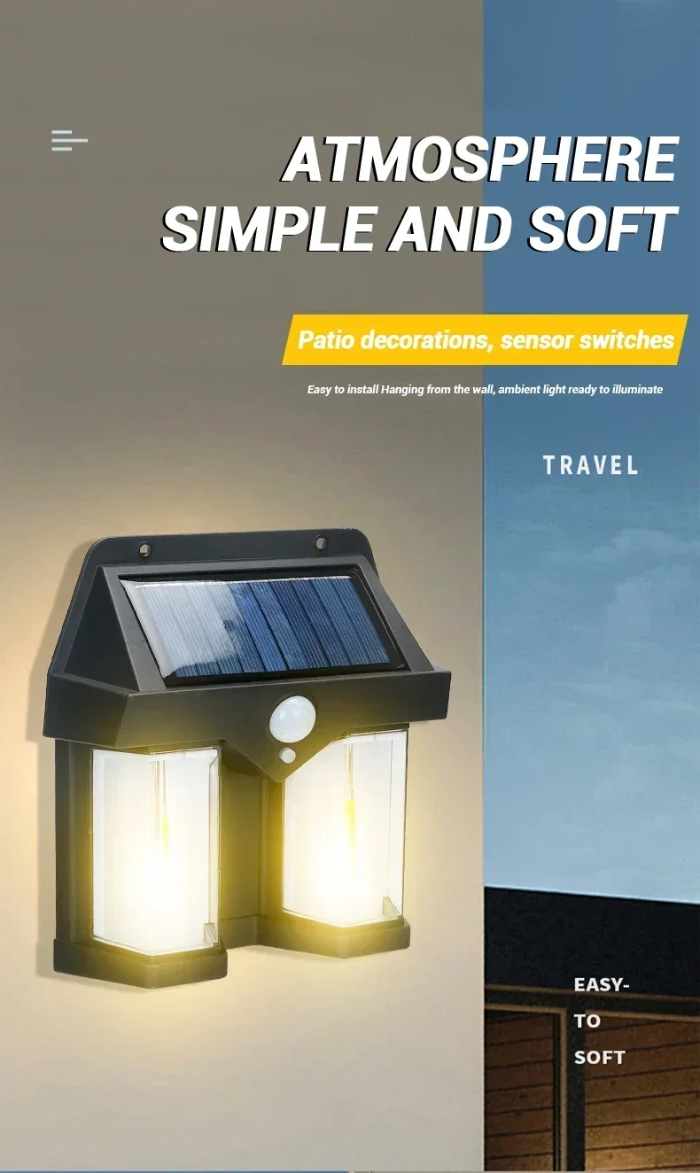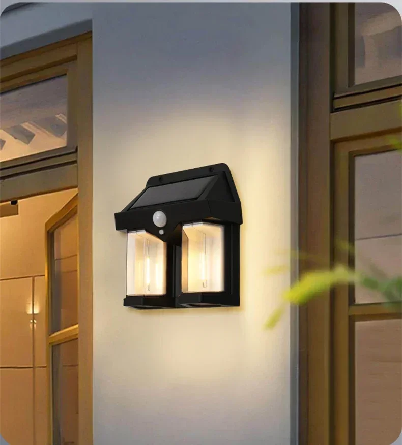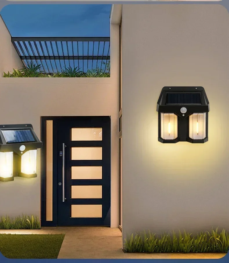 Solar Tungsten Wall Light: This solar wall light uses tungsten wire as the light source, which is bright and durable. It runs without batteries or electricity, thanks to its solar panels, which can absorb sunlight and convert it into electricity. It charges during the day and automatically lights up at night, saving you electricity.