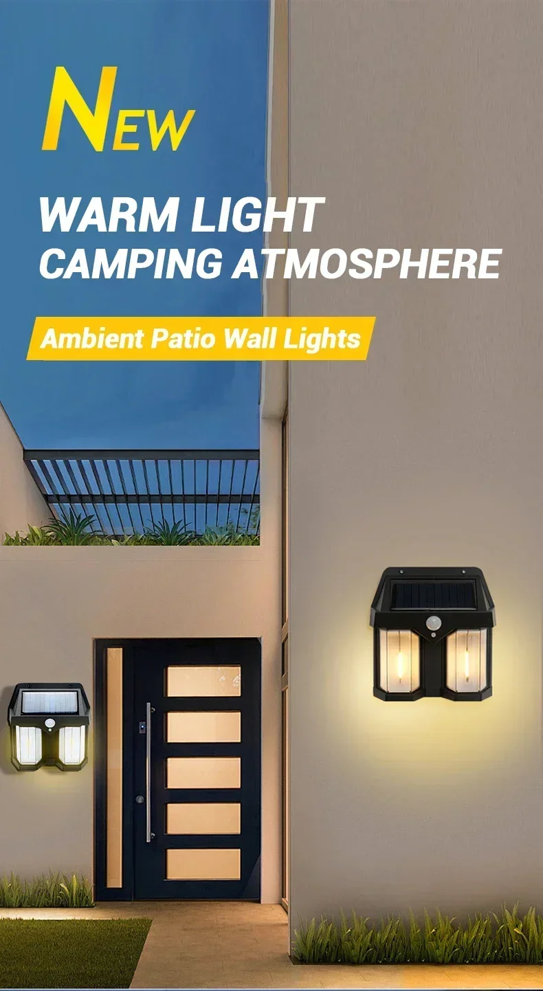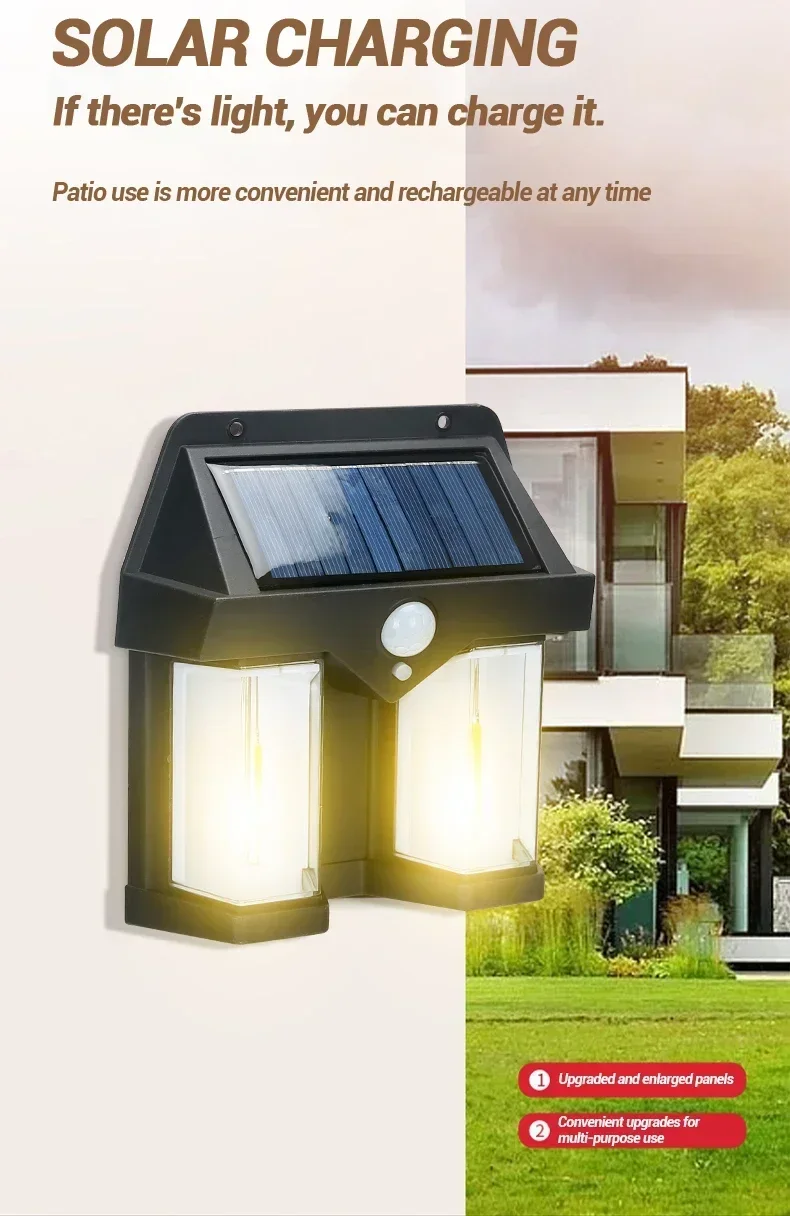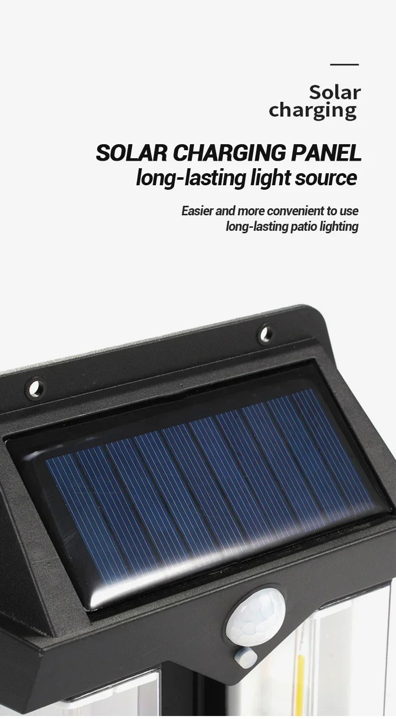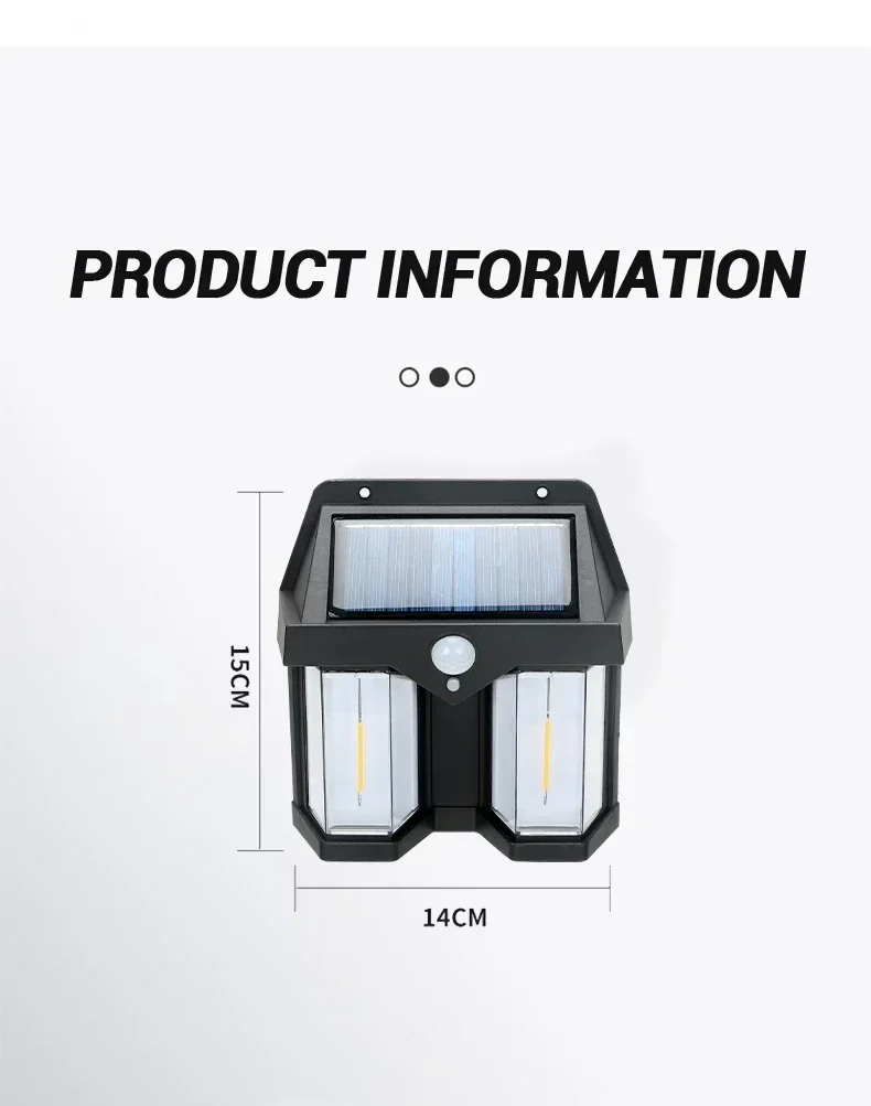 Solar Sensor Wall Light: The solar outdoor wall light can detect movement and adjust brightness accordingly. It also has a 15 second delay to save energy. The solar wall light has a sensitive sensor that automatically turns on the lights at dusk and off at dawn. After being fully charged, it can provide up to 8 hours of warm and comfortable lighting.