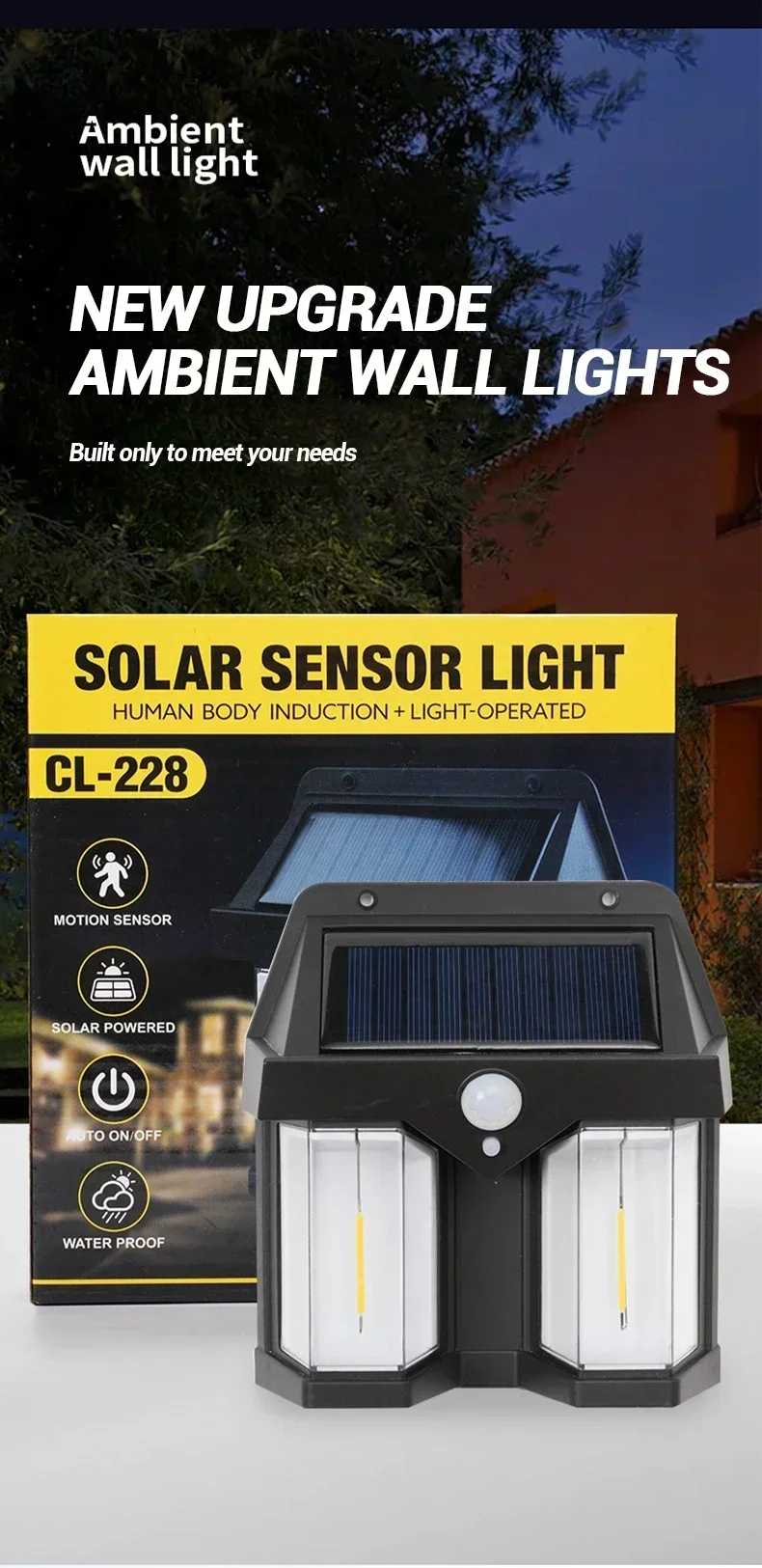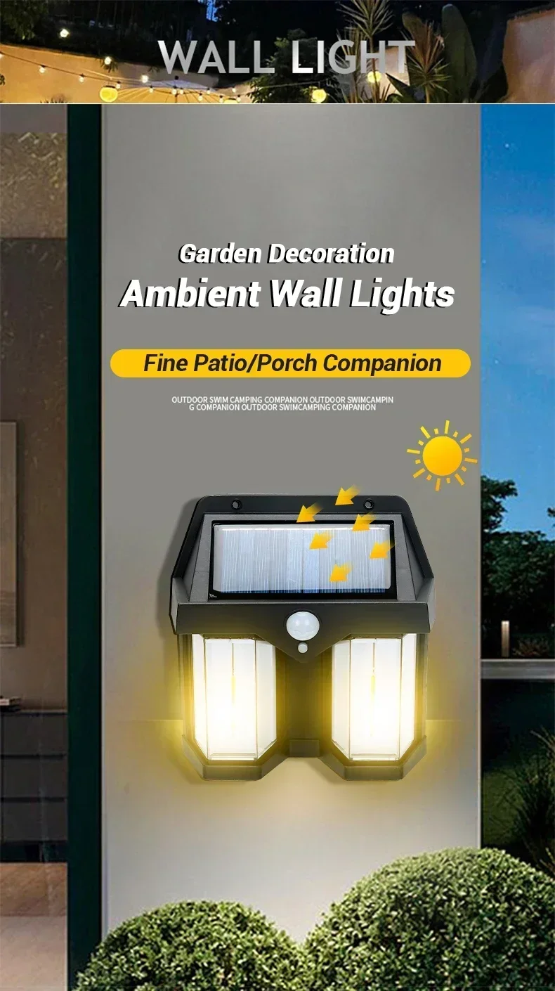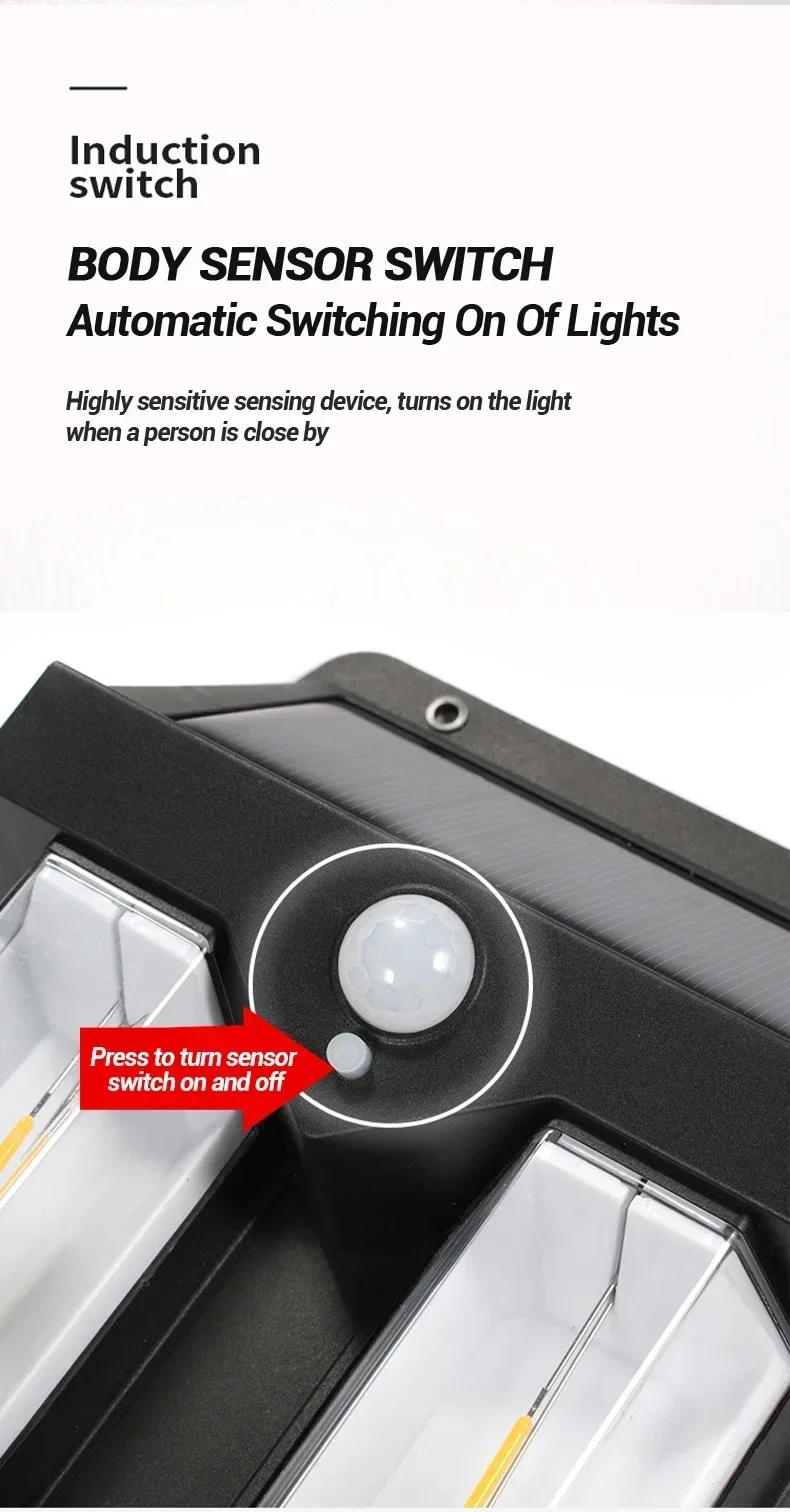 Solar Sensor Wall Light: The solar outdoor wall light can detect movement and adjust brightness accordingly. It also has a 15 second delay to save energy. The solar wall light has a sensitive sensor that automatically turns on the lights at dusk and off at dawn. After being fully charged, it can provide up to 8 hours of warm and comfortable lighting.